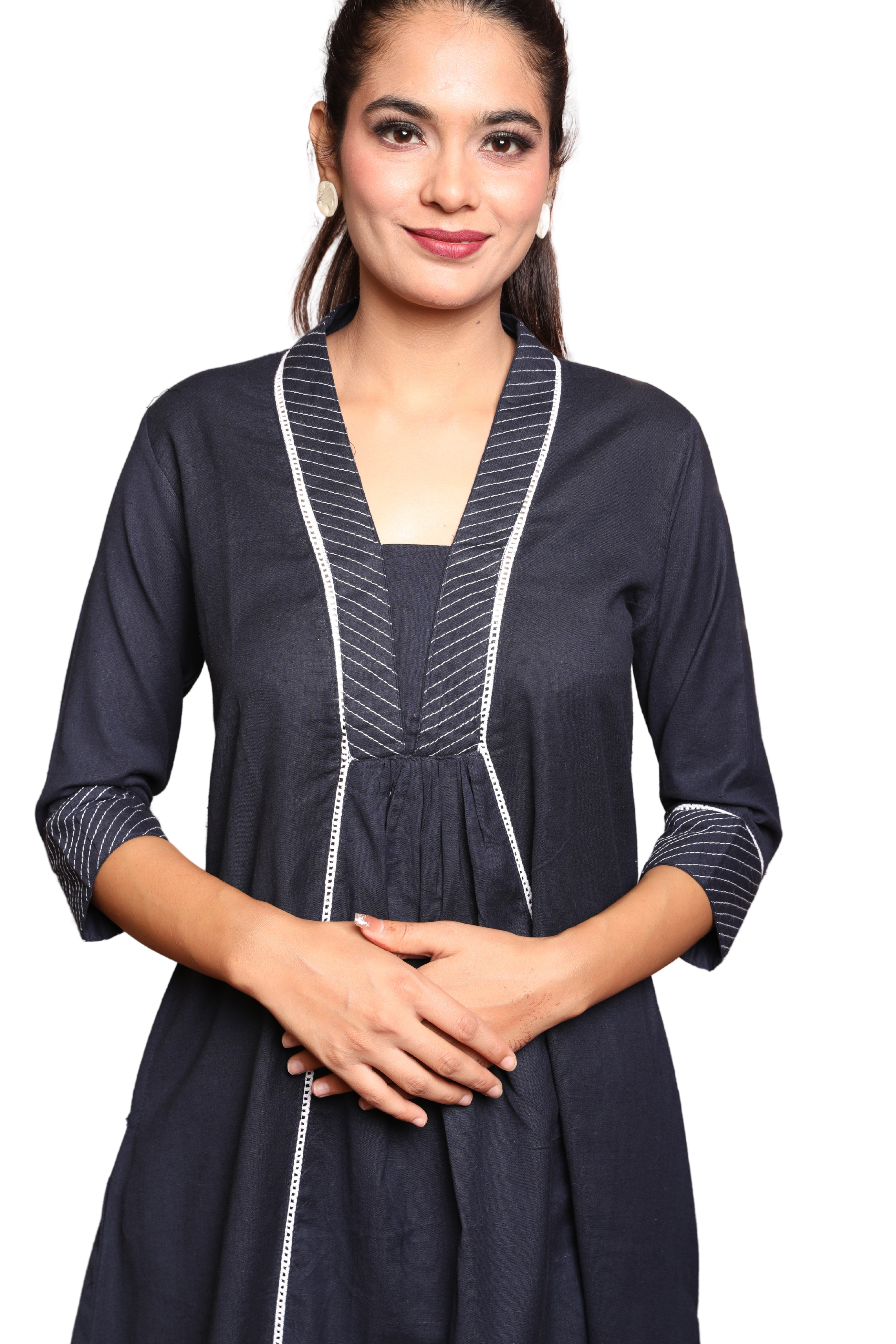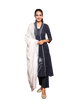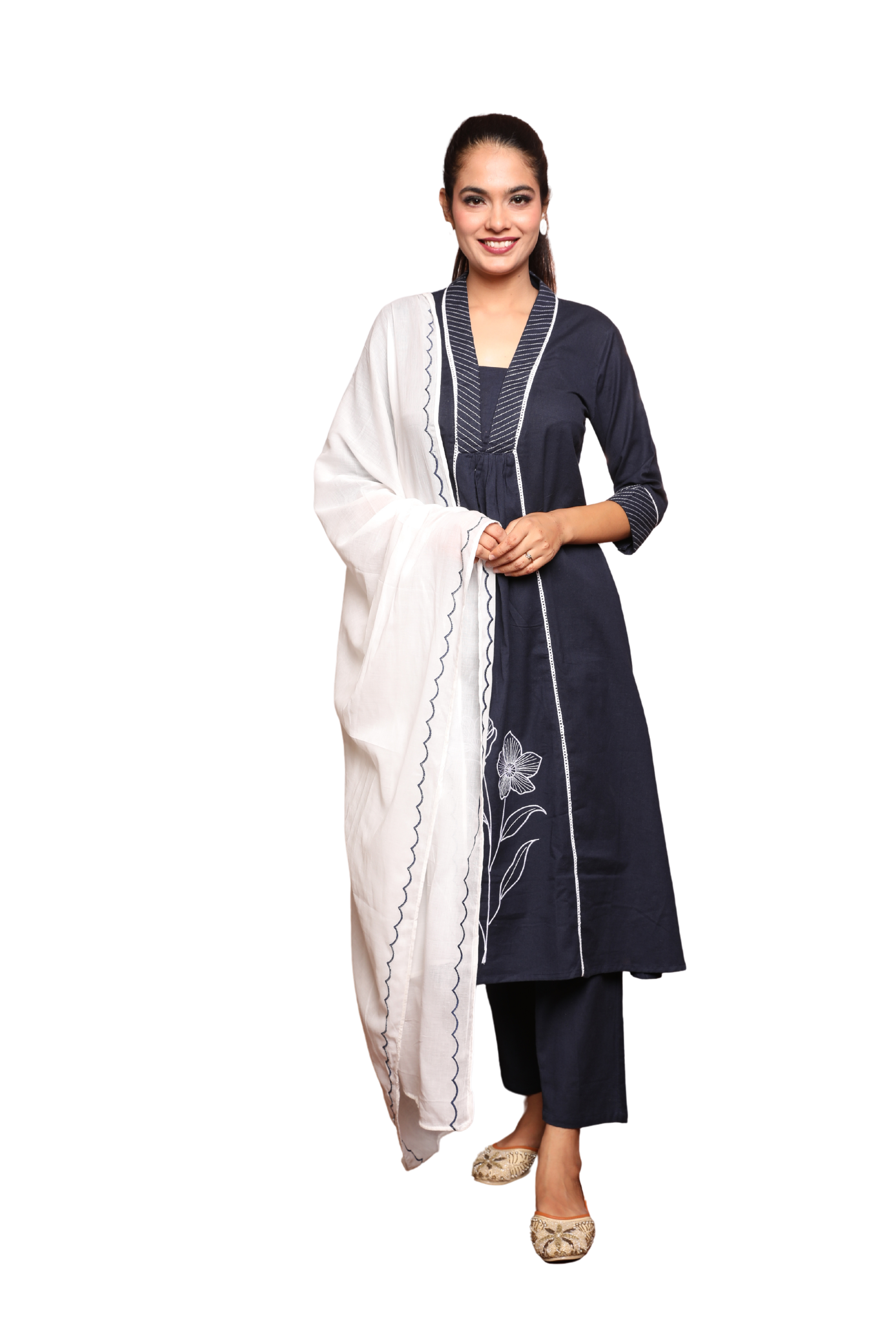 Elevate your everyday ethnic wardrobe with this elegant 3-piece suit set crafted in breathable flex cotton. The kurta features delicate lace detailing on the yoke and machine-embroidered floral motifs on the front, adding subtle charm and sophistication. The matching pant with convenient pockets ensures comfort and functionality, while the coordinating dupatta completes the look with grace. |