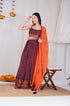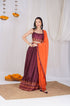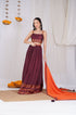 Brown embellished gown featuring intercate embroidery with elegant detail.