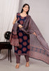 Stay cool and stylish in Style JC 14, a lightweight and airy 3-piece cotton kurta set in a rich brown tone. Featuring a sleeveless straight kurta with traditional hand block floral and stripe motifs, this ensemble exudes effortless ethnic elegance.The printed dupatta and matching pants make it a coordinated look that’s perfect for warmer days, relaxed brunches, or travel-ready ethnic wear. The fine thread print accents add subtle depth and artisanal appeal to this easy-going outfit.