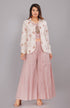 Add a refined twist to your wardrobe with Style 21 – a 3-piece Coord Set in a warm peach-brown hand block-style print. The set features a printed shirt and pant combo with a coordinated inner blouse, elevated by a handcrafted embroidered motif using thread, mirrors, and beadwork.Comfortable yet statement-making, this set is perfect for festive day events, casual celebrations, or anytime you want to blend ethnic craft with modern cuts.