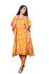 Graceful and contemporary, this 2-piece kaftan set brings effortless style to your wardrobe. Crafted in vibrant pink and yellow hues, the kaftan features elegant lace detailing and mirror work on the neckline, adding a festive sparkle. Paired with chic tulip pants, this ensemble is perfect for intimate gatherings, haldi/mehndi functions, or relaxed festive occasions.