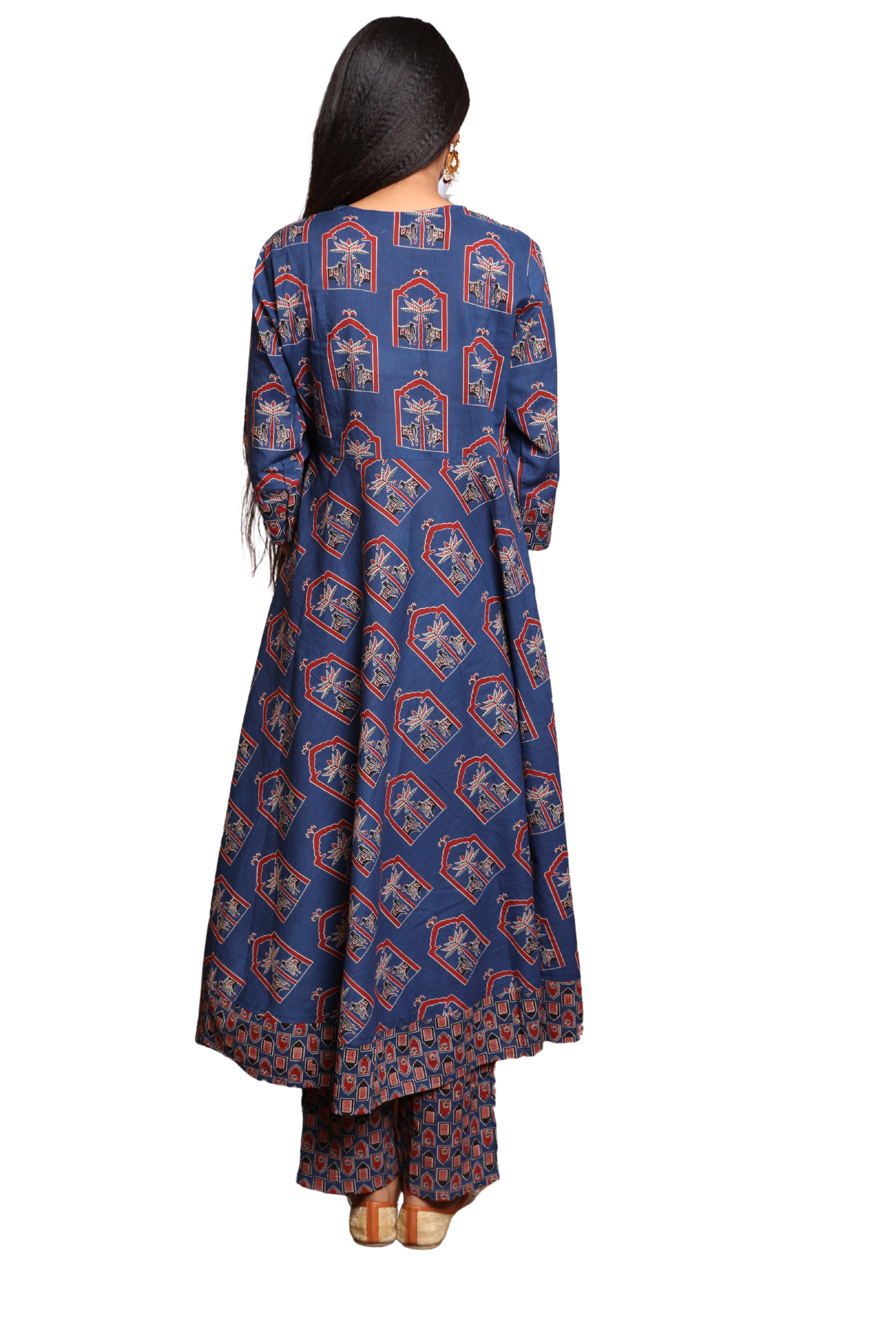 Women’s 3-Piece Angrakha Style Suit Set with Mirror Work and Hand Block Print